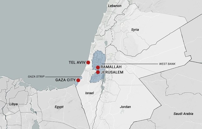 Palestine currently consists of two separate territories – the West Bank and Gaza – governed by separate Palestinian groups.