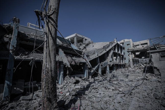 Displaced Palestinians,including children,returning to their destroyed homes after the ceasefire agreement (Picture: Getty)