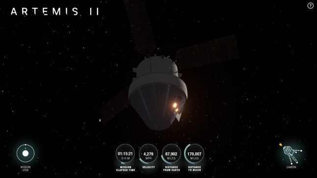 Nasa’s tracker uses data being constantly streamed from the Orion to locate it (Picture: Nasa)